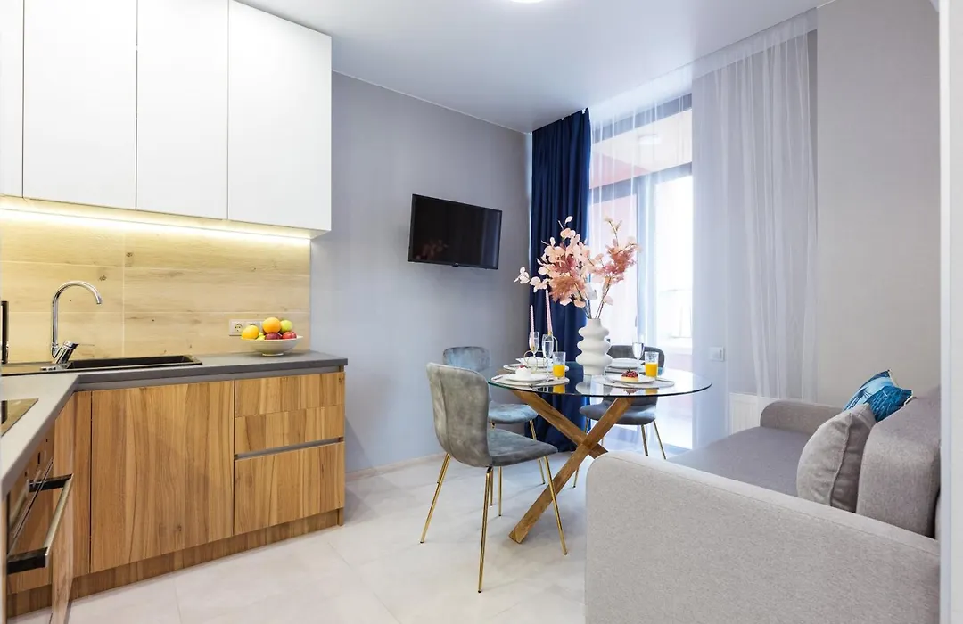 З вікон апартаментів відкривається вид на місто. До послуг гостей балкон і гардероб. Для забезпечення вашого комфорту в цьому помешканні передбачені окремий туалет і душ. Крім того, тут є фен, рушники і капці.
